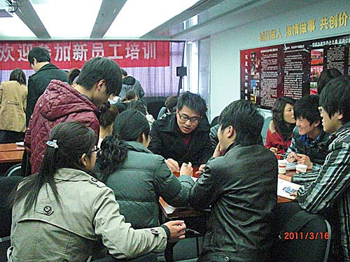 優秀市場部經理陶玲為新員工分享“如何贏得客戶”的營銷培訓