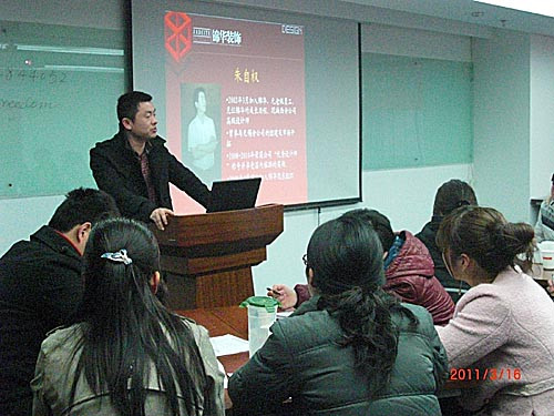 設計部高級設計師朱自權為大家做設計師營銷、如何快速簽單的培訓分享