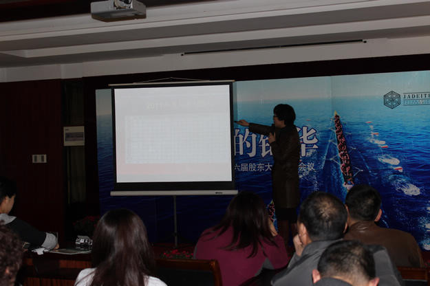 本次股東大會的第一個議題,就是對所有股東在2011年工作進行績效評估;在股東大會現場,南京大區總經理丁晴通過一系列的數據,詳細描述了所有股東在2011年的工作表現,并對業務部門的所有股東進行了一一點評!